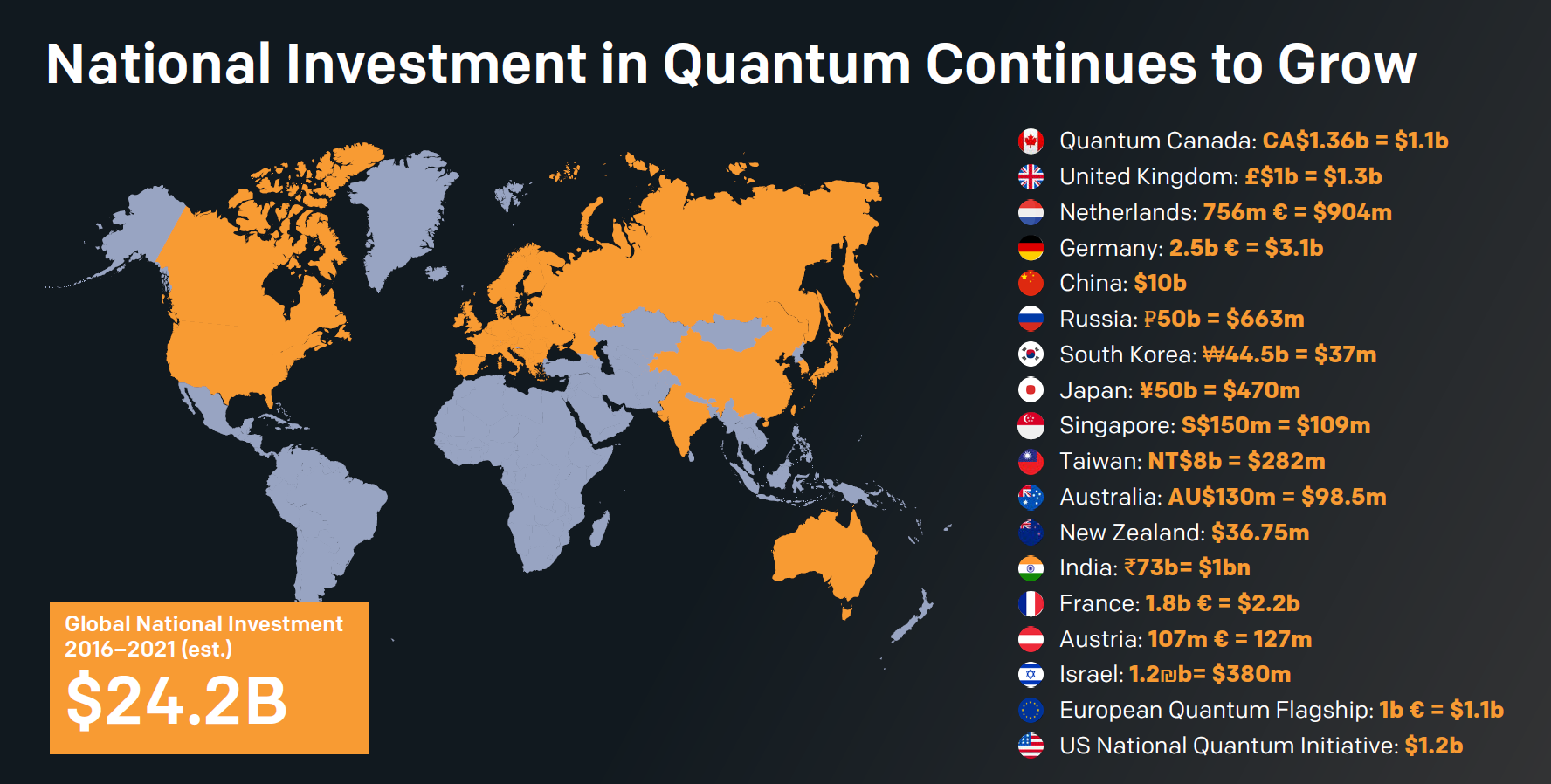 전 세계적으로 양자컴퓨터에 대한 관심 및 투자가 급격히 증가하고 있는 상황이다. 이는 세계 각국의 주요 정상의 발언을 통해서도 알 수 있으며 양자컴퓨터 기술은 곧 해당 국가의 경쟁력으로도 평가받고 있다.