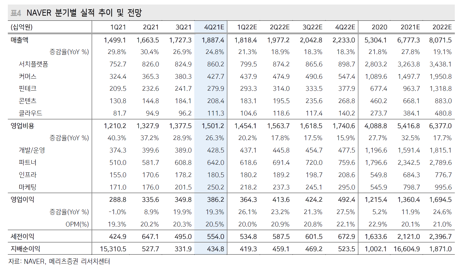 사업영역은 크게 서치 플랫폼, 커머스, 핀테크, 콘텐츠, 클라우드로 나뉘어 있다. 대 분류만 들어도 앞으로의 성장성이 무궁무진하다는 느낌을 받는다.