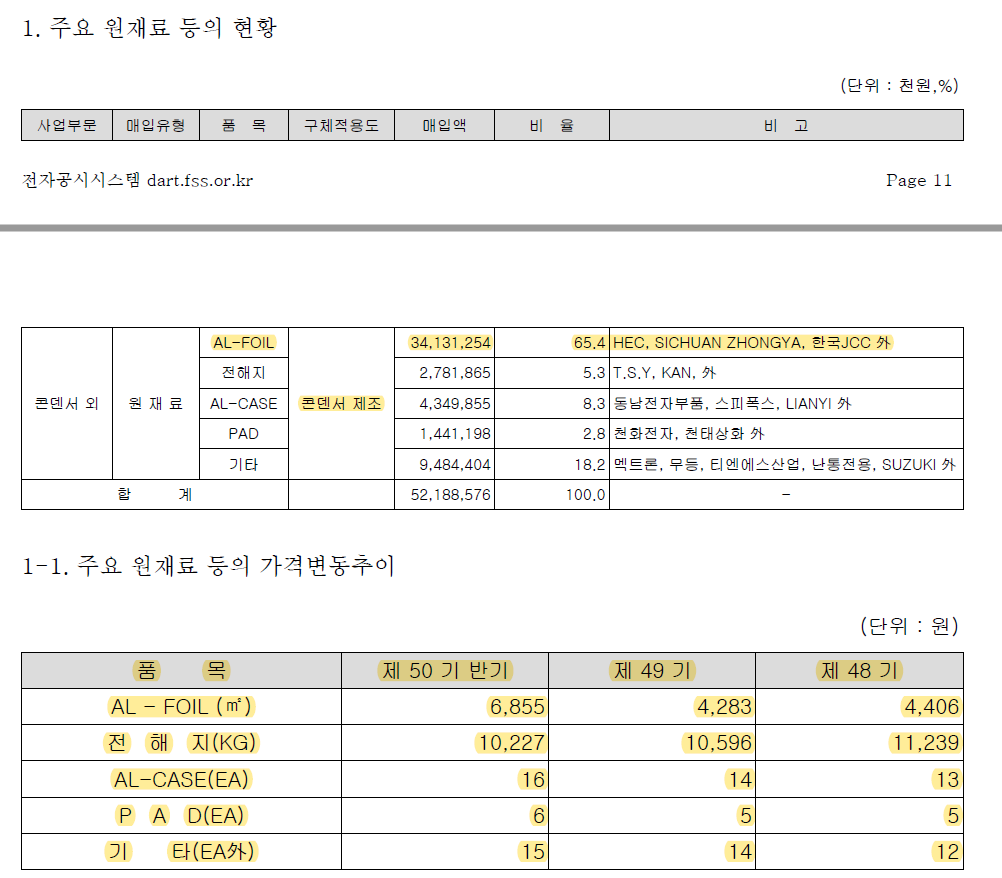-> 원재료를 중국에서 많이 수입하고 있는데 원재료 업체를 통해서 알아본 바로는 중국의 콘덴서 기업들이 많이 도산했다고 함. 이로 인한 반사이익이 어느 정도 있었음