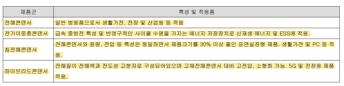 -> 신제품이 아닌 기존의 콘덴서는 한국 중국 일본 거의 기술력이 비슷하다고 보면 된다. 삼화전기에서는 S-CAP, 하이브리드 콘덴서 등에 강점이 있다.