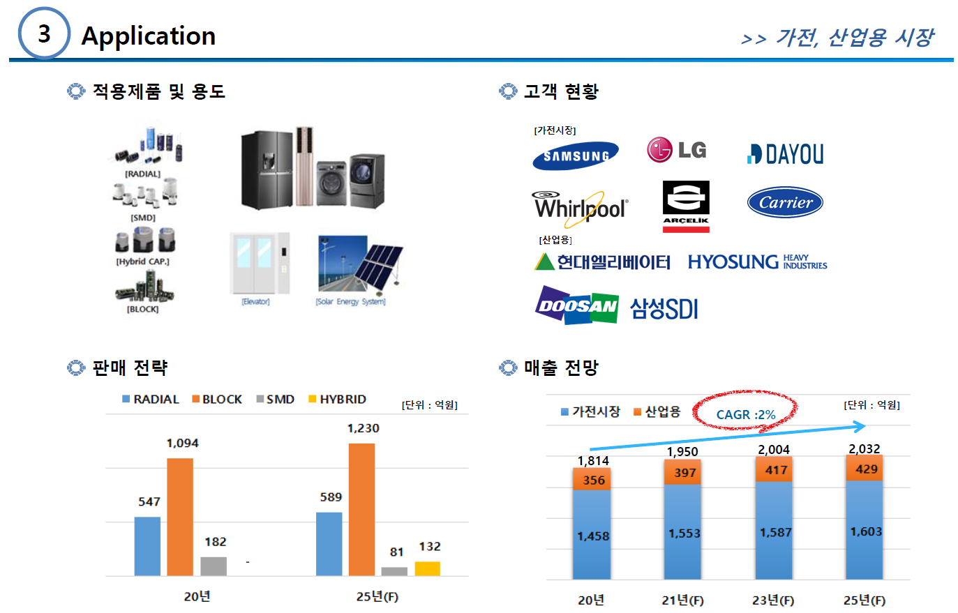하지만 가전 및 산업용 시장은 연평균 성장률이 2%대에 머물 정도로 확장성이 작은 시장이다.