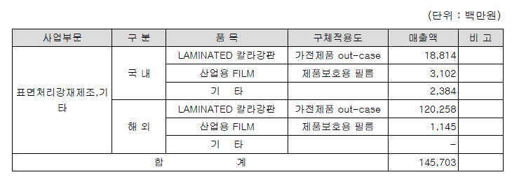 - 가전제품에 들어가는 컬러 라미네이트 강판을 생산하는 회사이다