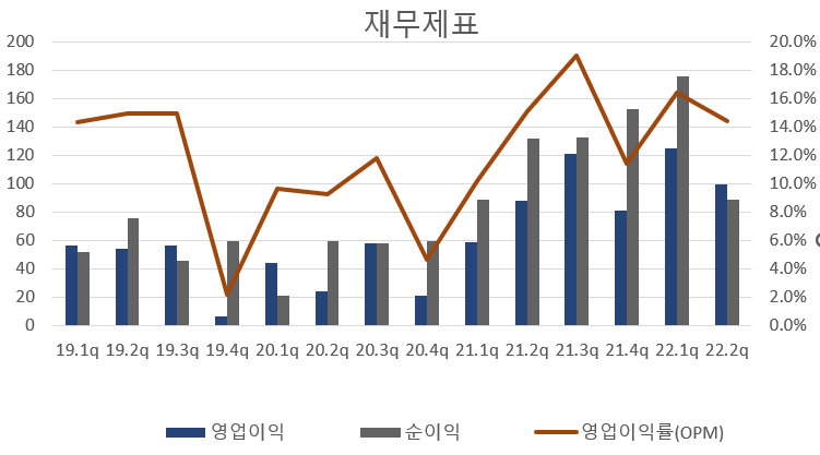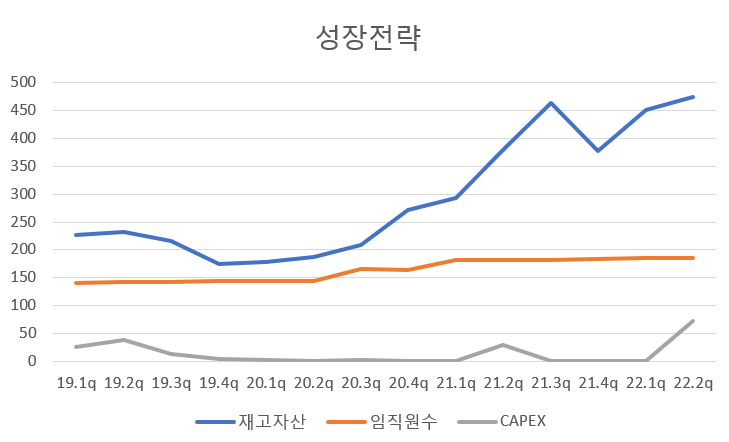 -> 현금흐름 또한 좋다. 22년 2분기에 잉여현금흐름이 -로 돌아섰지만 이는 CAPEX증가에 따른 것으로 오히려 좋은 징조로 받아들일 수 있다.