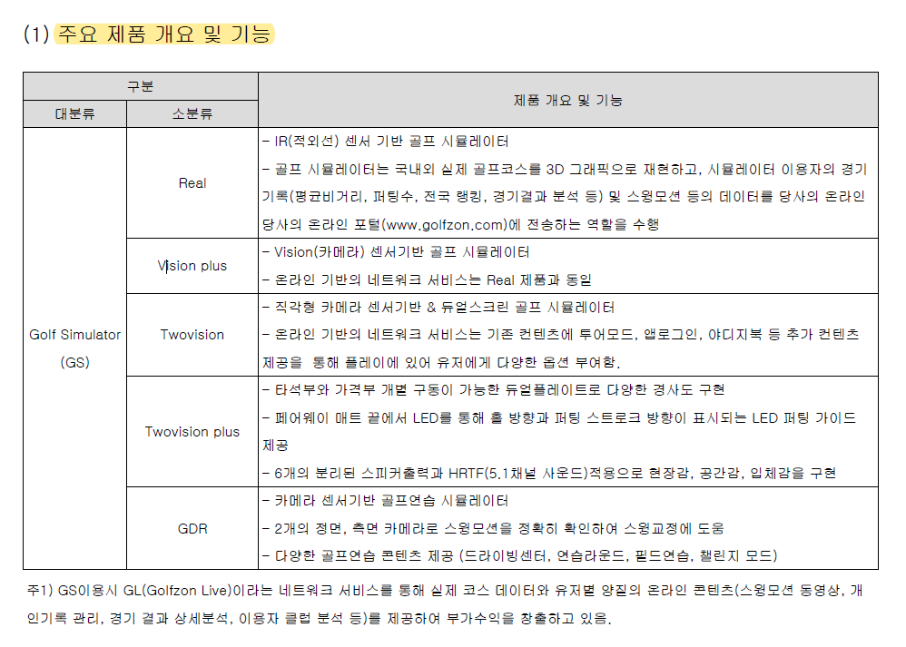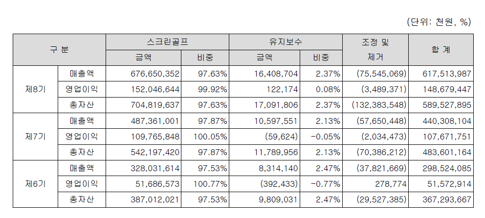 실적은 대부분 스크린골프 관련으로 생긴다. 유지보수는 적은 부분이다.
