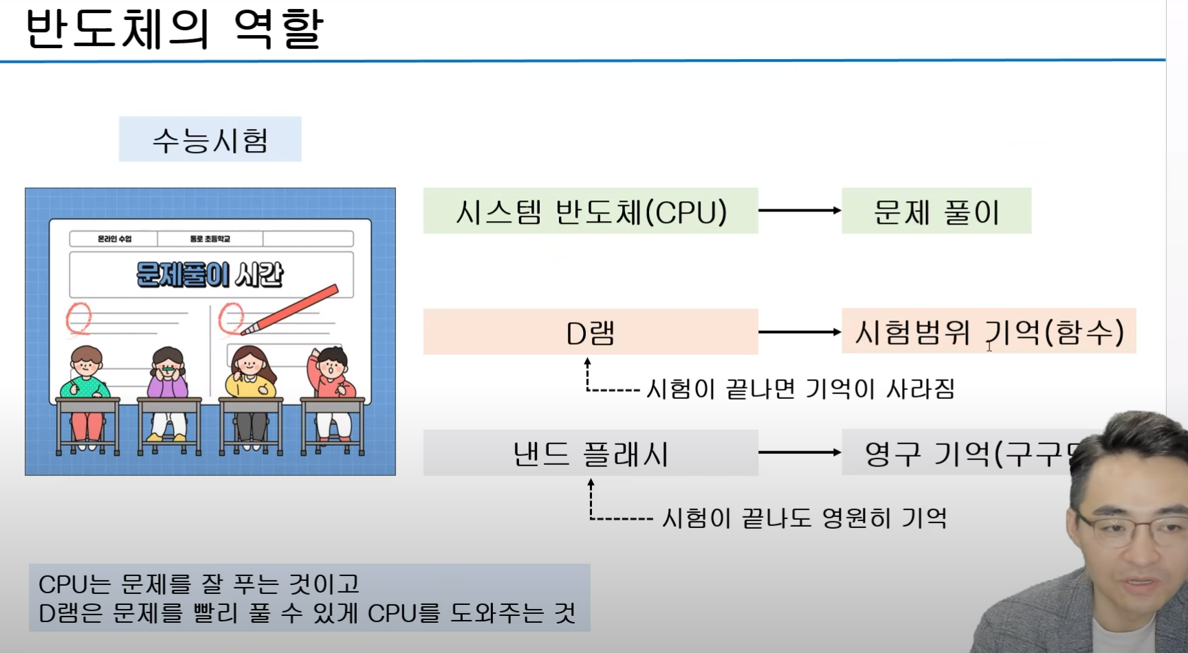 - 메모리반도체는 기억을 위해서