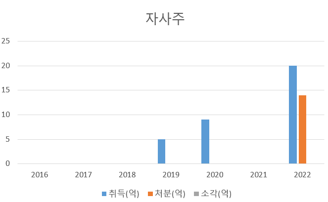 자사주 소각은 없고 취득만 있다. 22년에 자사주를 처분해서 임원들에게 성과급을 주었고 임원들은 100%를 다 썼는지는 모르겠으나 자사주를 매입하였다,