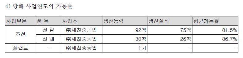 매출의 대부분은 조선의 선실 및 선체이다