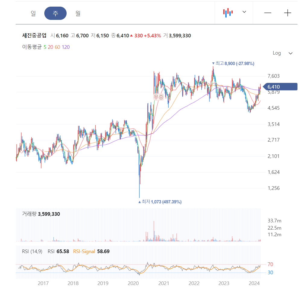 이중에서 나름의 기준으로 첫번째는 세진중공업이다