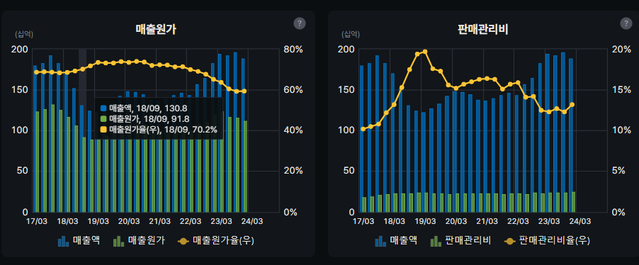 매출원가 판관비 낮아지는거 눈에 띄고