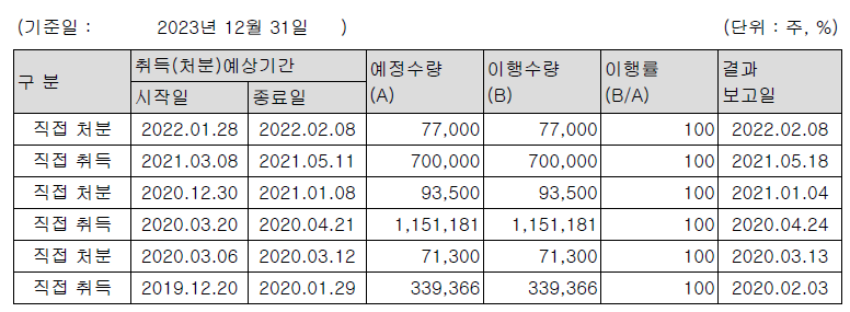 사업보고서를 보니 자사주 취득이 처분보다 많고