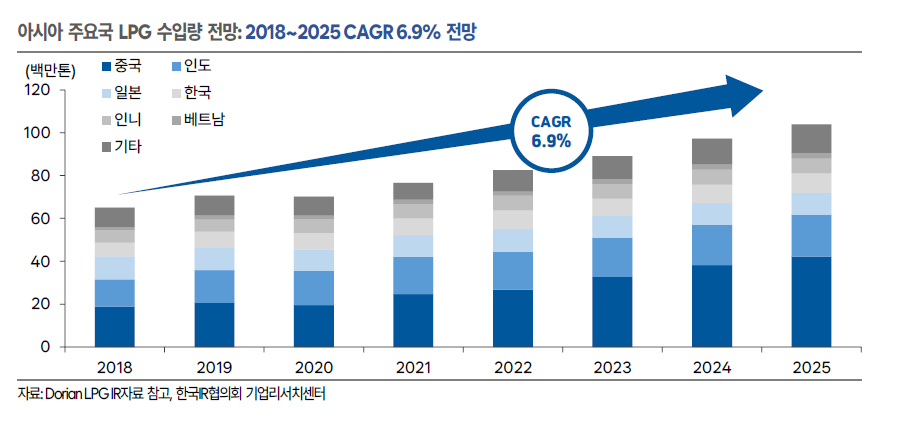 동량 증가(CAGR 6%), 3)20년 이상 노후 LPG선 증가에 따른 교체 수요 기대 등이다. Dorian LPG에 따르면 2023년