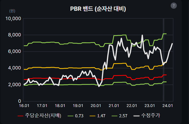 PBR 밴드 기준으로 봐야할 것 같고 현재는 박스권이다. 최근에 좀 오르긴 했지만 결국 박스권 내에서 움직였다.