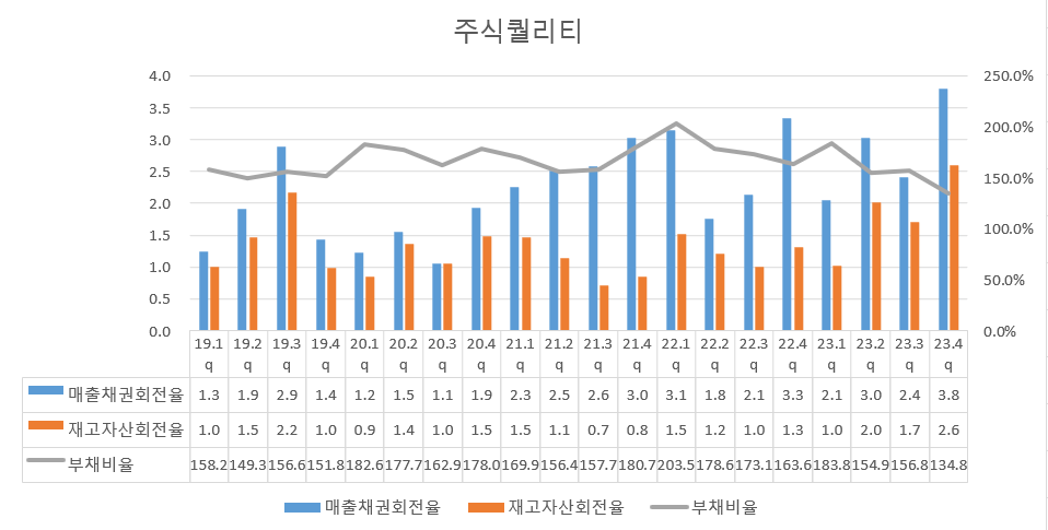 매출채권회전율, 재고자산회전율 모두 상승 중 좋은 모습