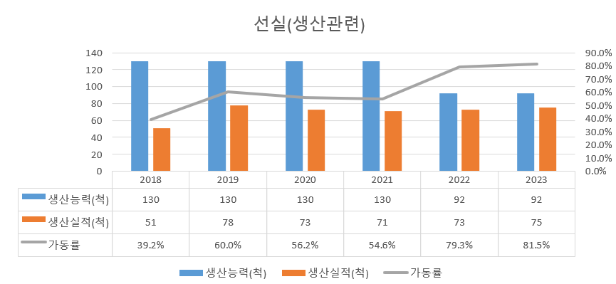Q) 22년기준으로 해서 생산능력이 오히려 줄었는데?