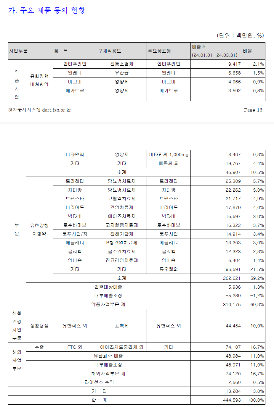 주요제품의 현황이다. 아래 해당 약품으로 영업이익율은 3%를 유지 중이다. 결국 촉매는 신약이다.