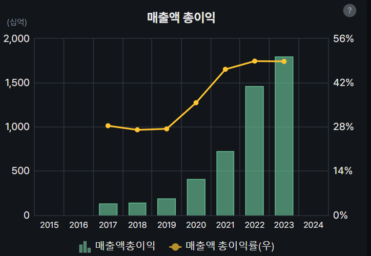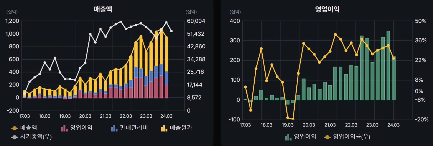 매출 및 이익 이익률 준수 다만 이익률 최근 감소세네