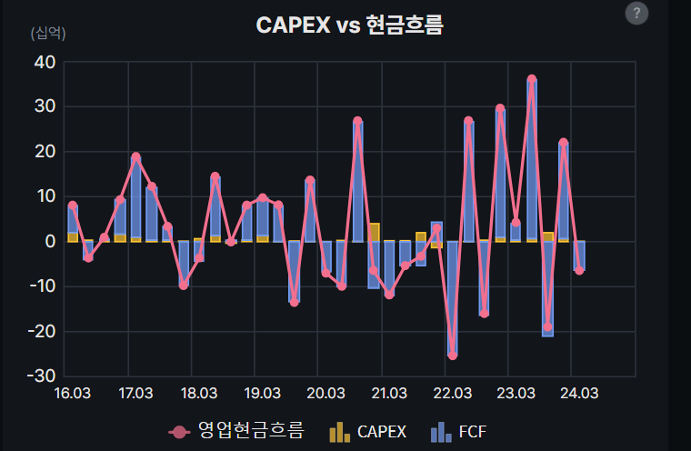 잉여현금흐름의 등락에 비해 CAPEX는 그리 크지않아보인다