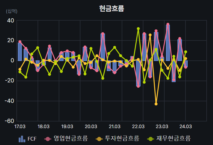 최근 실적이 좋다보니 최근 2년간 현금흐름이 좋다