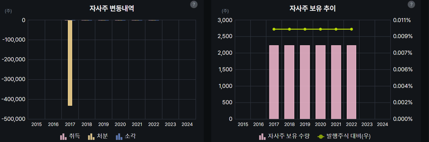 자사주도 2017년 처분한 이후로 따로 취득이 없다