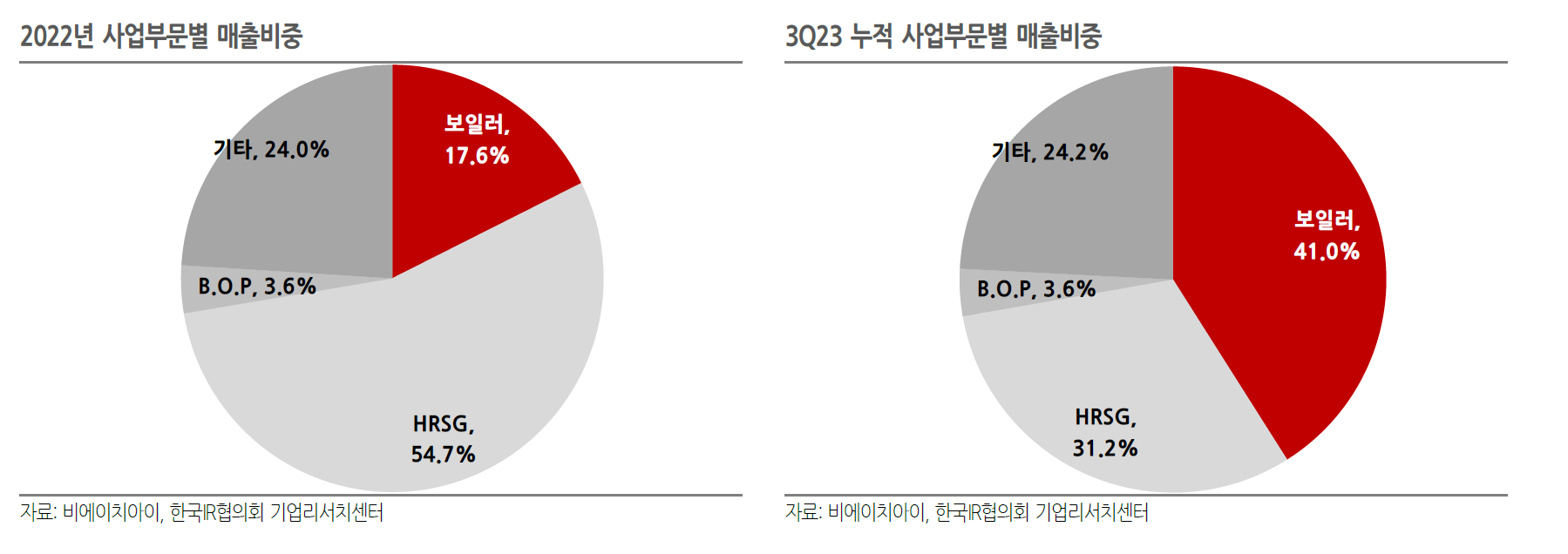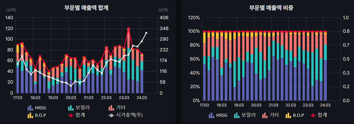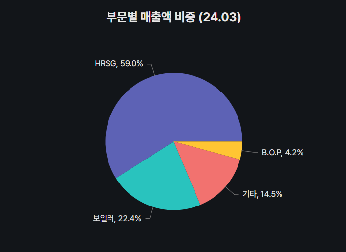 HRSG비중이 60%에 달하고 보일러가 22퍼센트이다 이 두 항목을 중점적으로 보면 될 것 같다.