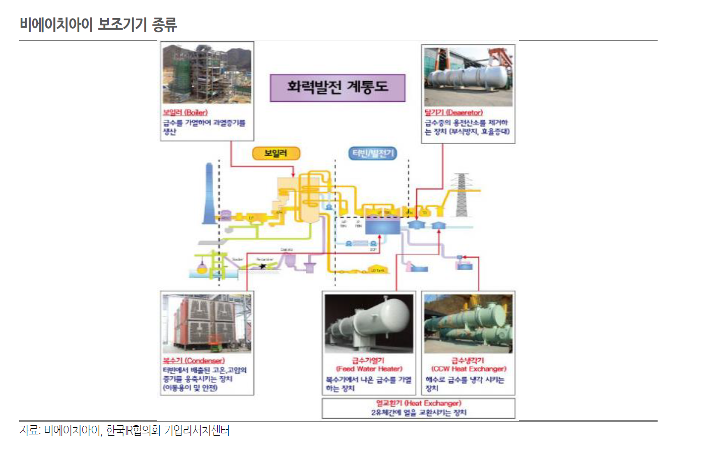 비에이치아이는 발전기자재업체로 보일러, HRSG(배열회수보일러) 등 주기기 및 B.O.P(보조기기) 생산, HRSG 부문 원천 기술을 보유한 글로벌 1위 업체이다. 간단히 들추어 보려고 하는데 한국IR협의회의 리포트가 잘 되어있어 이 리포트를 기본으로 해서 짧게 확인해보겠다.
