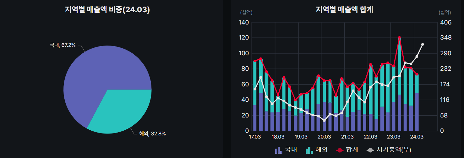 매출은 국내 비중이 상당하고