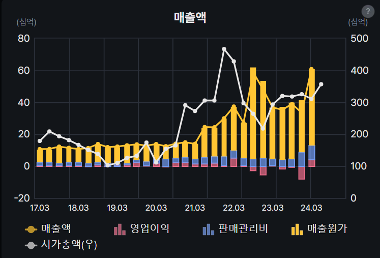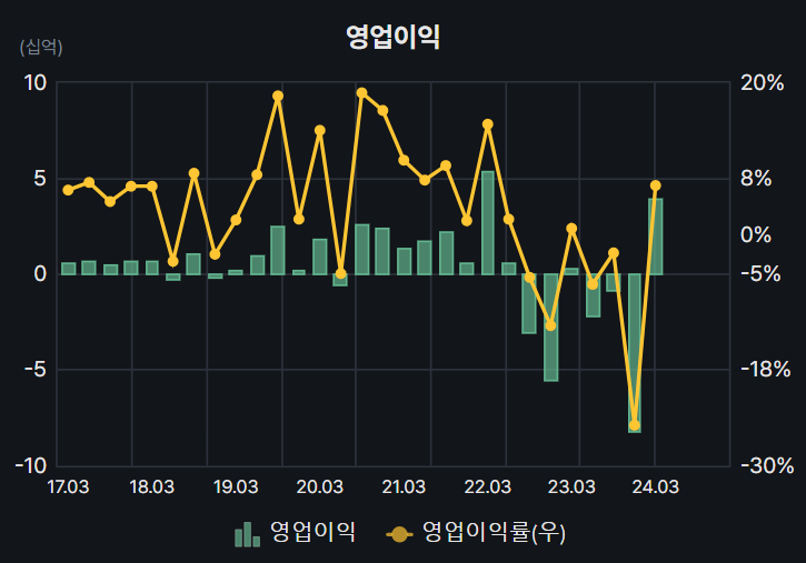 원래는 좀 본격적으로 분석할만한 기업이지 않을까 생각했는데 뭔가 아쉽다. 반도체가 턴할 건 맞는데 이미 반도체 기업을 가지고 있어서 추가 매수는 어려운 상황이고, 수소쪽에 내러티브가 있는 건 맞는데 뭔가 약하다. 손이 안간달까. EPS도 바닥권이다. 그냥 이런 기업이 있다 정도로 넘어가려 한다.
