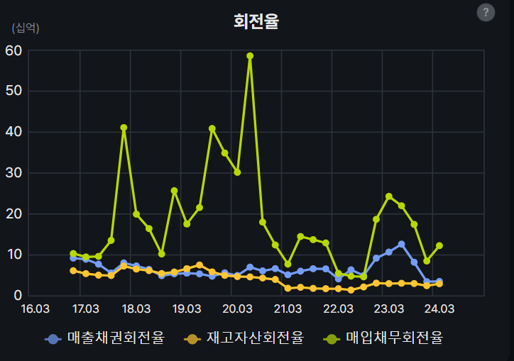 매출채권회전율은 좀 떨어져있고 재고자산회전율은 플랫하게