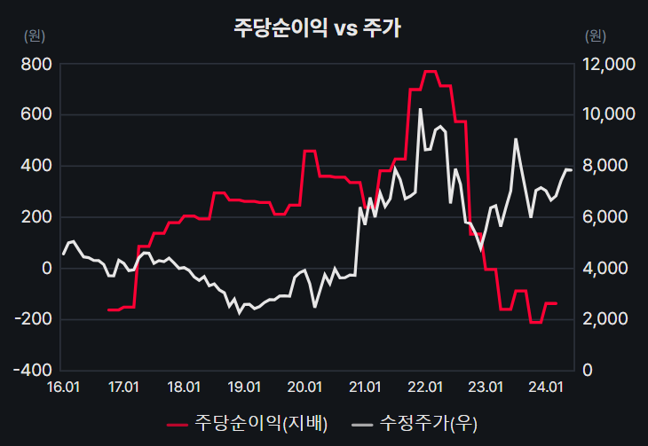 주당 순이익은 역대급 바닥이네