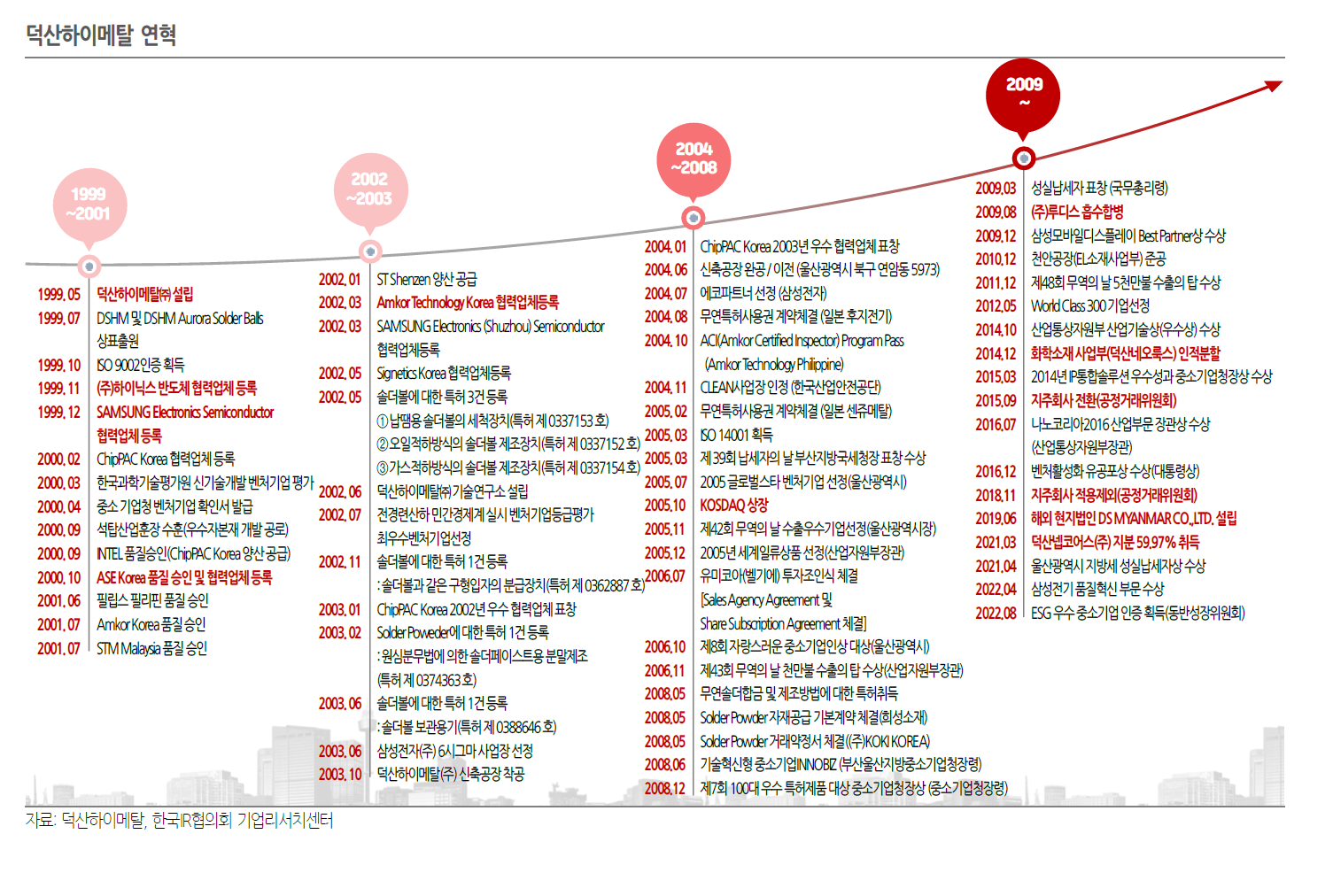 동사의 주요 사업은 반도체 패키징 공정에 사용되는 접합 소재인 Solder Ball(솔더볼) 제조이다. 솔더볼은 전기적 연결과 기계적 연결을 같이 해줄 수 있는 재료이다. 반도체 패키지에서 패키지와 PCB 기판을, 플립칩에서는 칩과 서브스트레이트를 전기적, 기계적으로 연결해주는 역할을 한다. 솔더볼은 30μm에서 760μm까지 크기가 다양하다. 최근 전기적 특성 향상을 위해 연결 핀 수를 늘리고 있어 솔더볼의 사이즈도 점점 작아지고 있다.