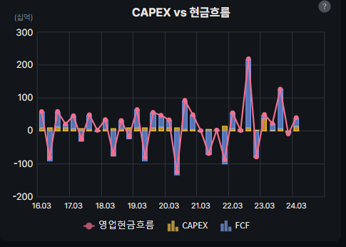 현금흐름을 보면 CAPEX는 그다지 부담되는 정도는 아닌 것으로 판단