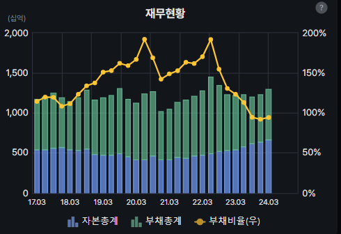 부채비율은 100% 아래대로 좋은 모습