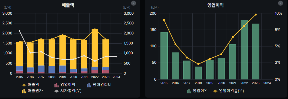 동사의 ‘23 년 실적은 매출액 약 1 조 7,088 억 원(-22.5% YoY), 영업이익 1,681억 원(-6.4% YoY)을 기록해 부진하다. 실적 부진의 주요 원인은 고객사가 과잉재고를 소진하기 위해 보수적인 재고 매입 정책을 실시하고 있기 때문이다.