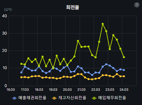 매출채권회전율, 재고자산회전율 플랫하게 유지