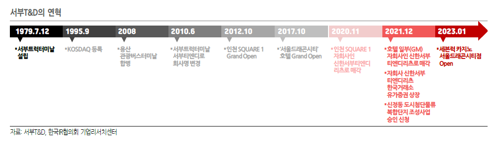 공용 화물자동차정류장 등을 사업목적으로 1979년 7월 12일에 설립된 서부T&D는 현재 관광호텔업, 쇼핑몰 운영업, 석유류 판매업, 물류시설 운영업을 주요사업으로 영위하고 있다. 관광호텔업이 성장의 주요 포인트고 쇼핑몰운영은 안정적인 현금흐름으로 생각하면 될듯.