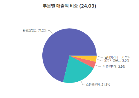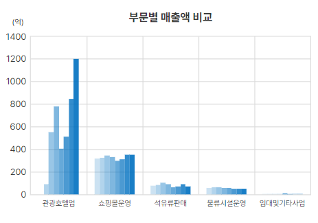 광광호텔업에서의 매출상승세가 가파름, 쇼핑몰운영 등은 코로나 시기에도 꾸준히 실적을 뒷받침해줌