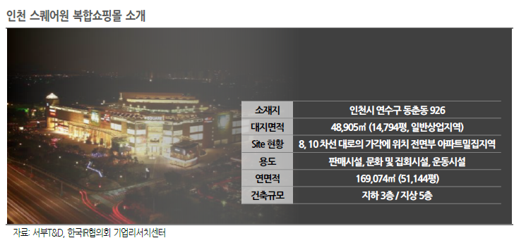 - 서부T&D는 2012년 스퀘어원(인천시 연수구 청능대로 210)이라는 복합쇼핑몰을 오픈하여 운영 중 스퀘어원은 연수신도시, 송도국제도시, 논현신도시, 남동공단 등 약 50만명의 배후 인구를 보유하고 있어 입지가 뛰어남