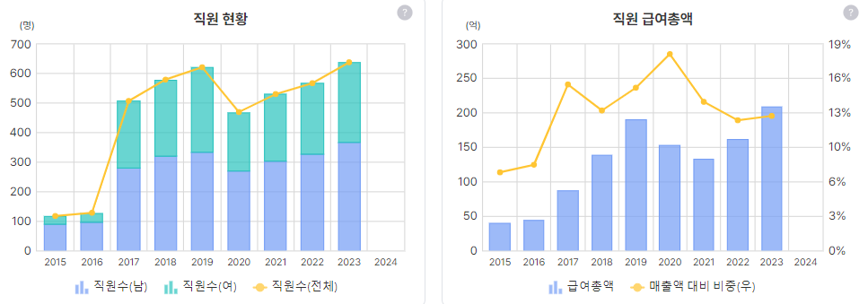 호텔업이다 보니 매출이 늘어날수록 직원이 늘고 급여총액도 늘어날 수 밖에 없을 듯