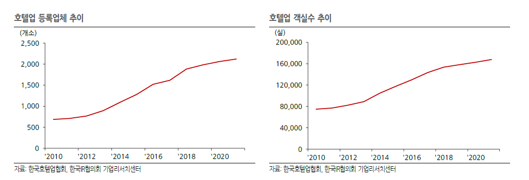 호텔업은 2013~2018년에 가장 가파르게 성장 vs. 2019년 이후 성장 둔화 그 배경은