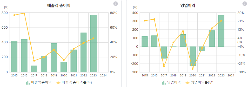 매출총이익률과 이익률을 보면 둘다 증가세