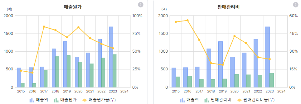 규모가 늘어날수록 매출원가와 판관비 감소