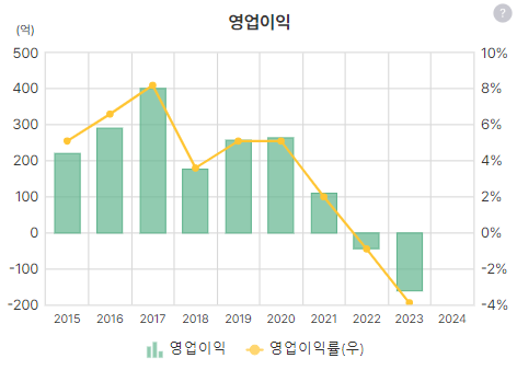 좀 자세히 봐보려고 했는데, 재무지표가 전체적으로 좋지 않다. 일단 내 기준에선 아웃인 종목인데 정성적 지표는 봐야할 듯 싶다. 간단한 지표만 올려보려한다.