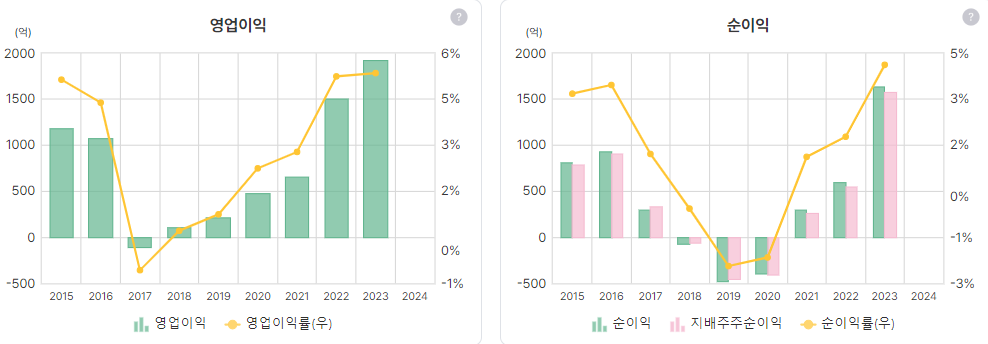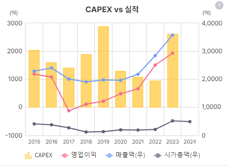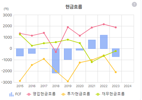 이익은 있었으나 23년 현금흐름은 좋지 않았음, CAPEX투자가 있었는지 확인할 필요 있음