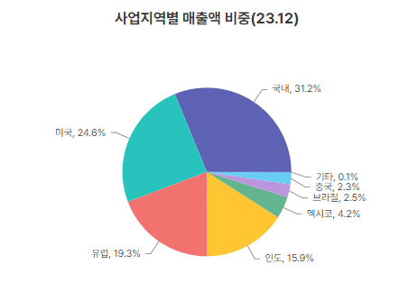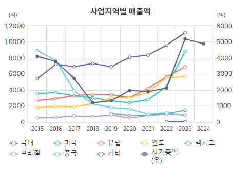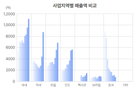 국내, 미국, 유럽, 인도의 매출 증가세가 눈에 띔