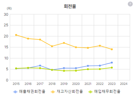 매출채권 회전율은 올라가는데, 재고자산회전율은 떨어졌네