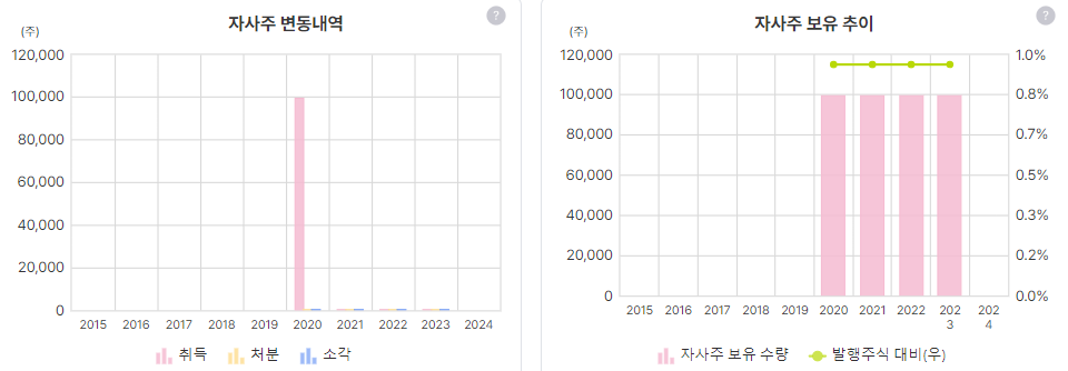 자사주 20년에 한 번 매입후 변화없이 유지중
