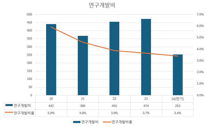 연구개발비는 절대금액으로는 늘어나고 있는 모습
