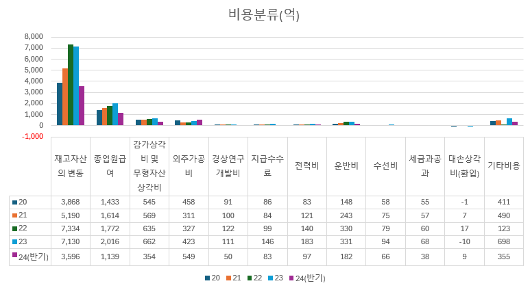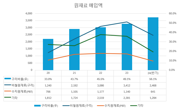 원재료에서는 구리가 주요하다고 보임(구리 비율 점점 높아지고 있음)