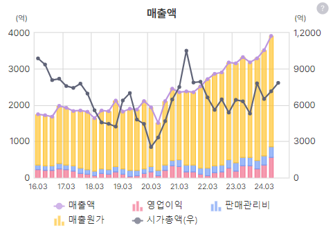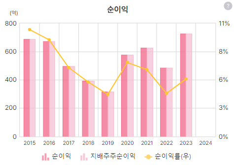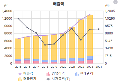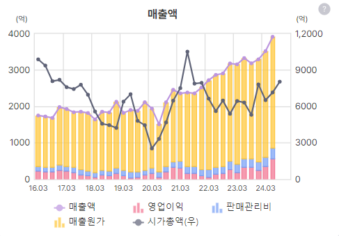 매출액 꾸준히 성장중, 연기준 40년간 역성장 없다고 하니 대단한 기업인 듯