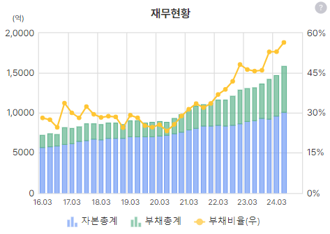최근의 투자 때문인지 부채비율은 올라가는 중
